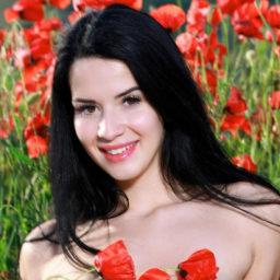 Роскошная брюнетка среди цветущих маков