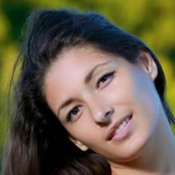 Melisa Mendini позирует на лугу.