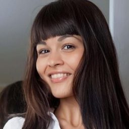 Шатенка с эффектной чёлкой